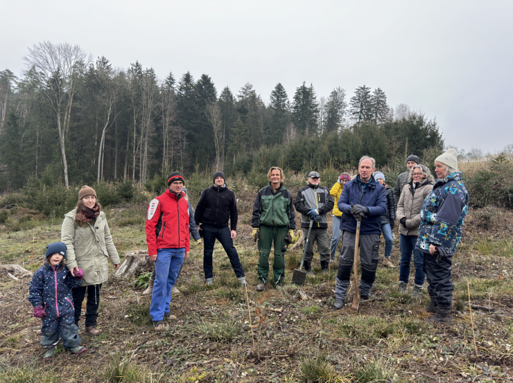 The saplings came from a local sustainable tree nursery. We received advice on which tree species are suitable for the slope: which ones thrive in drier areas, and which prefer the wetter low spots. So it’s important to know exactly where each tree will be planted. In Germany, the best time to plant trees is usually from late September to mid-December, though spring can also be an option. Depending on the region, protection against deer browsing should also be considered.