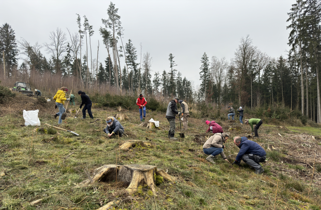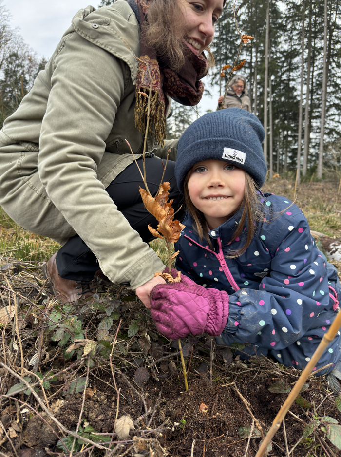 With Markus, we planted three-year-old saplings: Douglas firs, sequoias, oaks, beeches, and chestnuts. He guided us through the process: