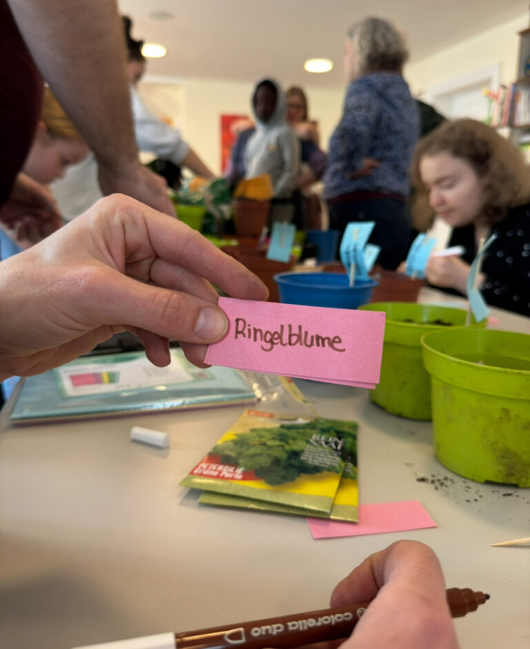 Sowing together is a great icebreaker for Eco Club participants. Everyone gets their hands in the soil, and conversations begin right away – about the plants, their needs, and more.