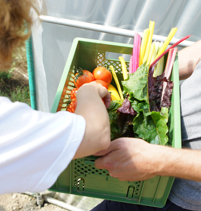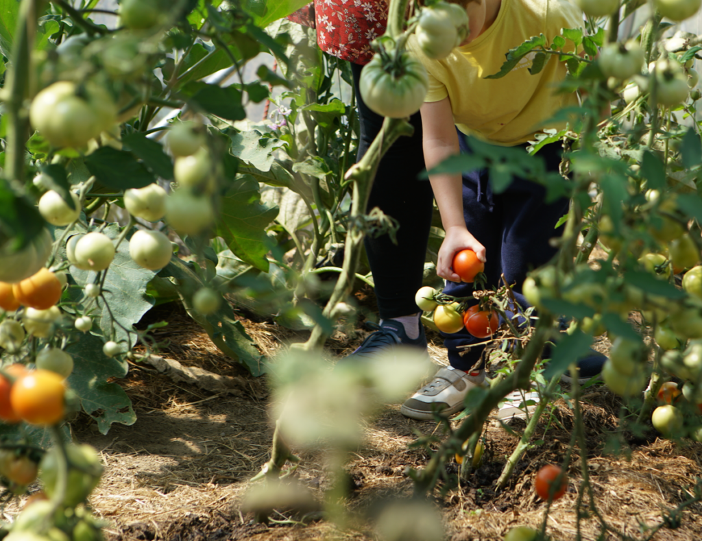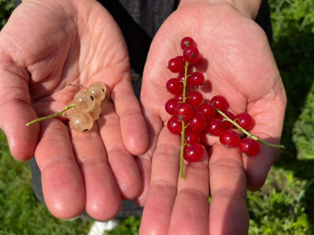 We explored the vegetable beds and harvested fresh chard, zucchinis, delicate zucchini blossoms, salad, and ripe tomatoes. In the tomato tunnels, the warm air smelled of summer, and outside, the “berry land” was full of different berries ready to be picked.